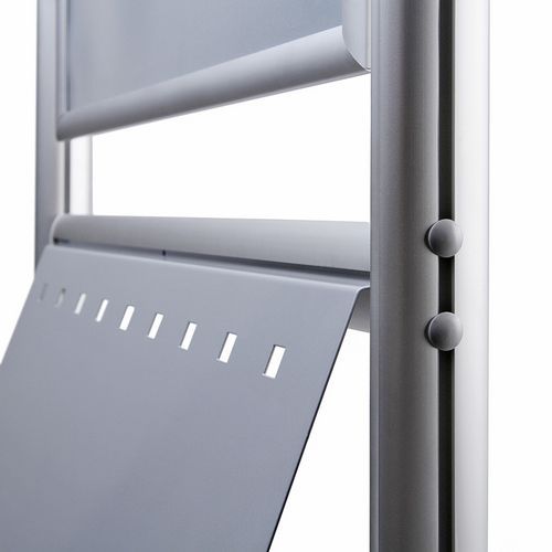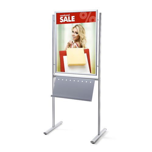Informačné stojany s rámom na plagáty. V spodnej časti sa nachádza priestor na umiestnenie plechového obalu na brožúry, katalógy a iné prospekty. Klip rám s ostrými rohmi a profilom 25 mm. Vyrobené v EÚ