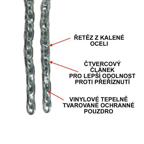 - Transparentný vinylový obal chráni reťaz proti korózii a mechanickému poškodeniu.