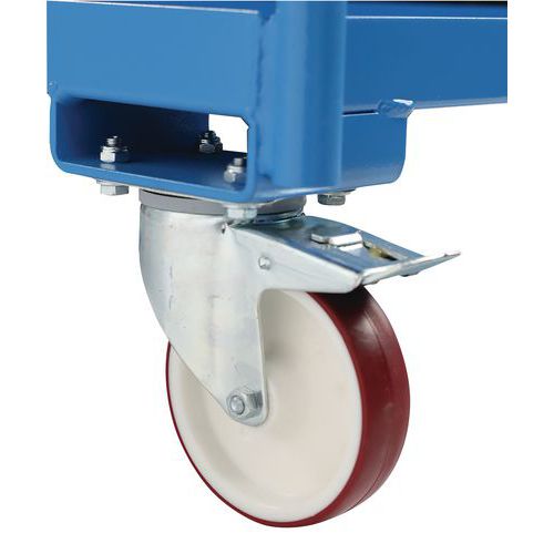 - Pojazdnosť zaisťujú 2 pevné kolieska a 2 otočné kolieska s brzdou s priemerom 125 mm.
