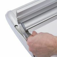 - Roll-Banner Premium Clamp ponúka flexibilné a dlhodobé riešenie vďaka výmenným grafikám.