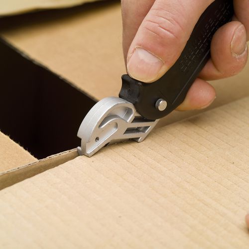 Nôž na rezanie fólií a kartónov s vymeniteľnou čepeľou. Zakrytá čepeľ bez ostrých špíc poskytuje maximálnu bezpečnosť pre používateľov aj tovar. Praktický otvor na zavesenie noža. Odporúčané použitie na kartóny, elastické a zmršťovacie fólie, lepiace pásky a plastové sťahovacie pásky. Vyrobené vo UK