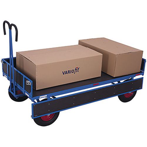 - Oceľový ručný vozík s plnými bočnicami, výška bočníc 210 mm.