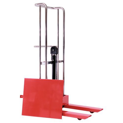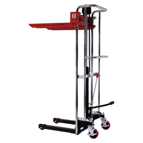 - Ručný stohovač určený na jednoduché zakladanie malých paliet alebo škatúľ.