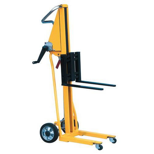 - Ručný stohovač s krátkymi vidlicami určený na jednoduché zakladanie malých ľahkých paliet. Vhodný pre kancelárie, obchody. Nastaviteľná šírka vidlíc.