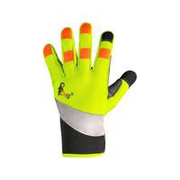 Kombinované rukavice s reflexnou páskou a silikónovými aplikáciami na prstoch pre lepší úchop a manipuláciu. Dlaň je vyrobená zo syntetickej kože (mikrovlákno), vďaka čomu sú rukavice pohodlné a odolné voči zmršťovaniu, rozťahovaniu a tvrdnutiu. Chrbát z prod Veľkosť: 09-10 Dĺžka: 25 - 26 cm Reflexné doplnky: Áno
