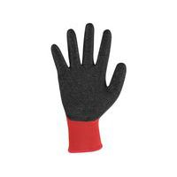 Pletené bezšvíkové rukavice, dlaň a prsty povrstvené latexom s protišmykovou úpravou pre lepší úchop, ochrana proti kontaktnému teplu do 100 ° C, pružná manžeta.