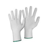 Komfortné bezšvíkové textilné rukavice. Dlaň a prsty pokryté drobnými PVC terčíkmi. Pružná pletená manžeta. Rukavice sú určené na kontakt so suchými typmi potravín po dobu až 30 minút pri teplotách do 40 °C pre opakované použitie. Odporúčané použitie: skladovanie, manipulácia s ľahkým a drobným materiálom, kontakt so suchými potravinami, jemná montáž.