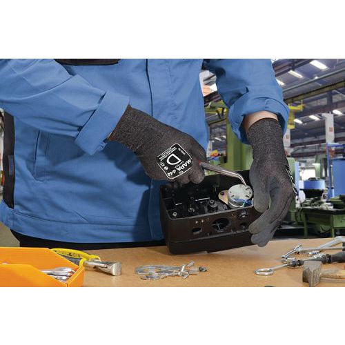 Bezšvíkové pletené rukavice pre maximálne pohodlie, dobrú obratnosť a pružnosť s vysokou ochranou proti prerezaniu (úroveň D). Obliečka je preukázateľne priedušná, pružná a odolná. Úroveň ochrany proti prerezaniu je možné ľahko určiť vďaka označeniu na chrbte rukavice. Neobsahuje silikón a pomáha predchádzať vzniku stôp a defektov na plechu a skle pred lakovaním. Kompatibilný s displejmi a dotykovými zariadeniami.