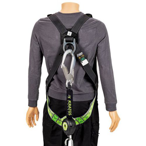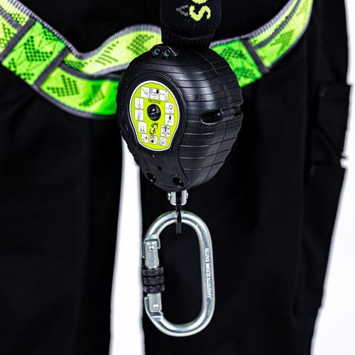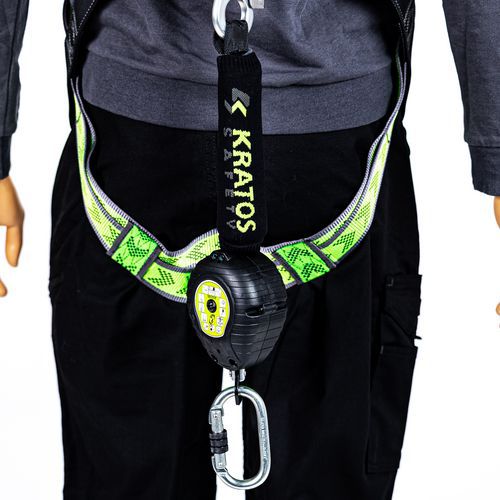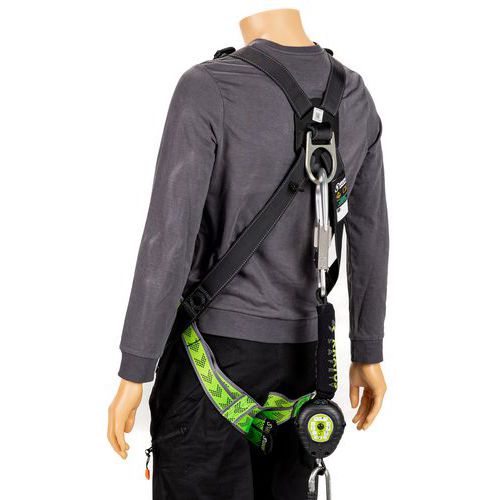 - Automatická tlmič pádu s 2m popruhom, umožňujúci voľný pohyb pri zachovaní ochrany.