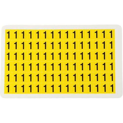 Čierne číslice na žltom podklade vyrobené z vinylu sa dodávajú v ôsmich rôznych veľkostiach. Desať rôznych číslic 0 – 9 je vysoko viditeľných a majú jednoduchú aplikáciu. Pri odstránení nezanechávajú stopy. Je možné využiť v kancelárii, sklade i vo výrobných závodoch. Balenie obsahuje 10 hárkov, každý s počtom etikiet meniacim sa podľa veľkosti etikety. typ upevnenia: samolepiace farba: žltá materiál: plast počet etikiet v hárku: 1 – 168 balenie: 10 hárkov
