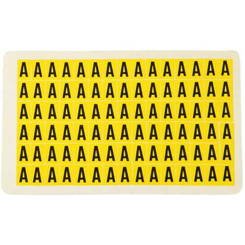 Čierne písmená na žltom podklade vyrobené z vinylu sa dodávajú v ôsmich rôznych veľkostiach. Dvadsaťšesť rôznych písmen A – Z, bez diakritiky, sú vysoko viditeľné a majú jednoduchú aplikáciu. Pri odstránení nezanechávajú stopy. Je možné využiť v kancelárii, sklade i vo výrobných závodoch. Balenie obsahuje 26 hárkov, každý s počtom etikiet meniacim sa podľa veľkosti etikety.