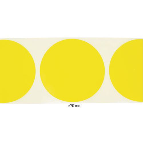 Samolepiace značkovacie kolieska Manutan Expert, žltá, priemer 70 mm, 500 ks na rolku