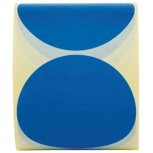 Samolepiace značkovacie kolieska Manutan Expert, modrá, priemer 90 mm, 500 ks na rolku