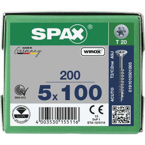 - Vysoko kvalitné univerzálne skrutky SPAX s plnými závitmi sú navrhnuté pre rýchlu, efektívnu a čistú prácu v dreve, bez nutnosti predvŕtania.
