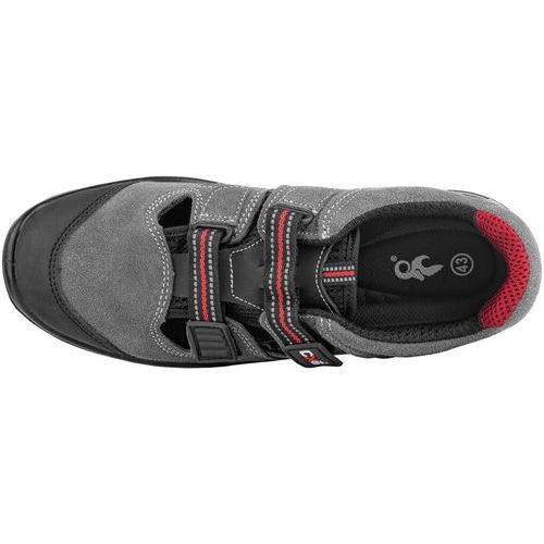Sandál, koža, perforovaný. Materiál: zvršok z kvalitnej brúsenej kože, podšívka z kvalitnej priedušnej tkaniny, PU-guma, odolná voči olejom, antistatická, protišmyková podrážka, odolná voči kontaktnému teplu do 300 °C. Veľkosť: 37-48 Typ obuvi: Sandále Stupeň ochrany: O1 Predpisy: EN ISO 20347:2012 O1 FO HRO SRA Zloženie materiálu: zvršok z kvalitnej brúsenej kože, podšívka z kvalitnej priedušnej kože textil, PU-guma, odolná voči olejom, antistatická, protišmyková podrážka, odolná voči kontaktu teplota do 300 °C Farba: sivá
