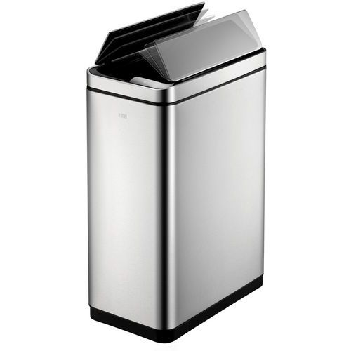 - Elegantný odpadkový kôš z brúsenej nehrdzavejúcej ocele s povrchovou úpravou proti odtlačkom prstov a syntetickou vložkou.