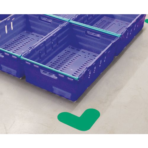 - Označenie v troch farebných variantoch v tvare „L“ je vyrobené z polyvinylchloridu a vybavené silným lepidlom s protišmykovou vrstvou.