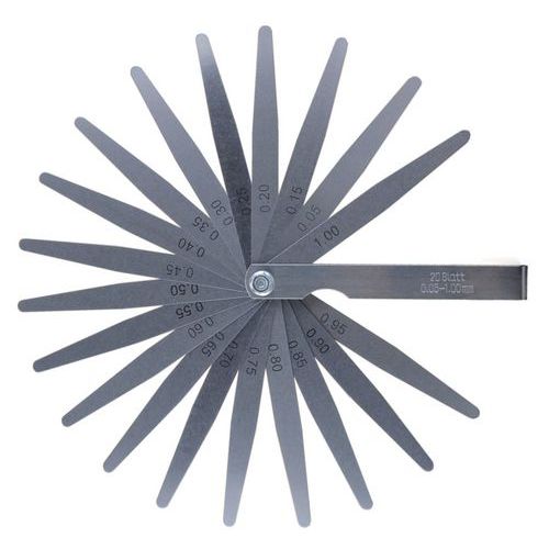 - Oceľové mierky škár s rozsahom 0,05 až 1 mm.