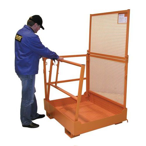 Klietka je vybavená pozinkovanou policou na náradie a zaistením proti zídeniu z vidlice vysokozdvižného vozíka.
