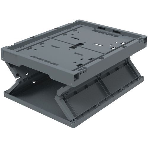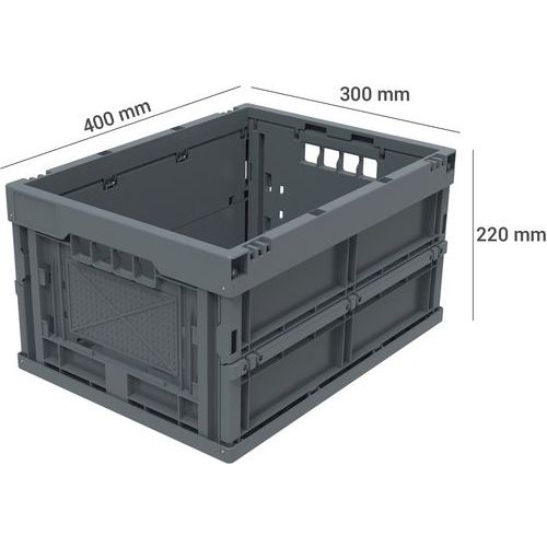 - Robustné skladacie prepravky z recyklovaného polypropylénu s ergonomickými polootvorenými rukoväťami.