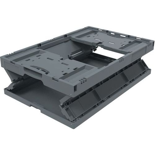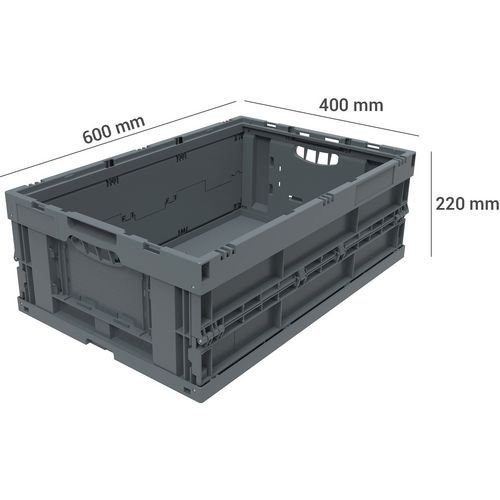 - Robustné skladacie prepravky z recyklovaného polypropylénu s ergonomickými polootvorenými rukoväťami.