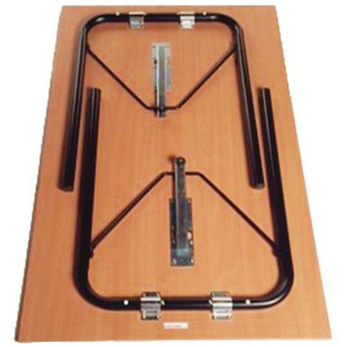 - Skladací stôl s nohami v tvare U. Ľahko sa rozkladá umiestnením nôh pod stôl. Stohovateľný s ochranou na nohách, ktorá chráni stôl pri skladaní.