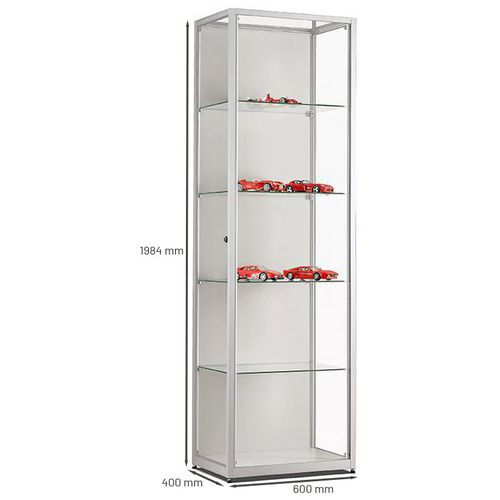 Sklenená produktová vitrína Manutan Expert, 198,4 x 60 x 40 cm, strieborná