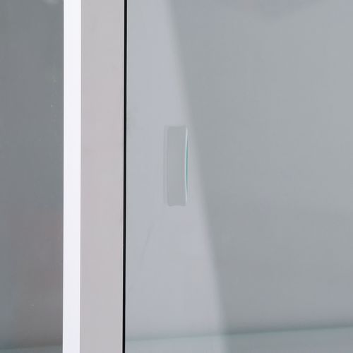 - Vybavená štyrmi nastaviteľnými policami z plaveného skla hr. 5 mm.