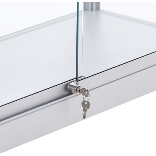 Sklenená produktová vitrína Manutan Expert, 200 x 80 x 40 cm, strieborná
