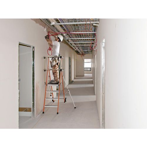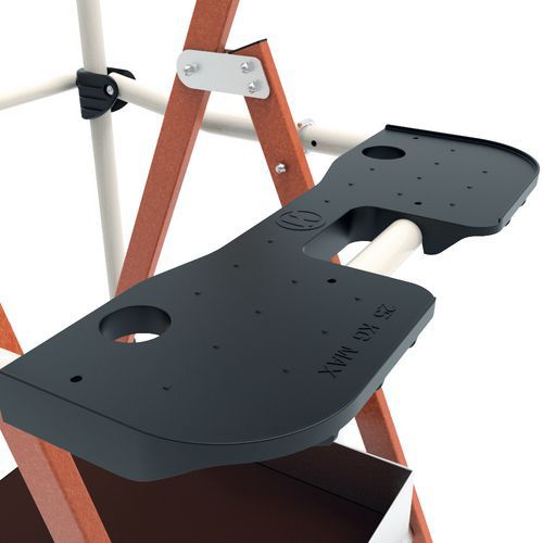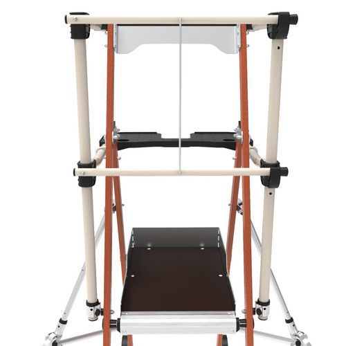 Pracovné plošiny s izoláciou Sherpa Fiber. Stojiny zo sklených vlákien - izolačný materiál pre bezpečnú prácu proti nízkym napäťovým prúdom do 1 500 voltov. náradie - nosnosť 25 kg, s integrovanými háčikmi (10 kg). Sklopné stabilizátory s milimetrovým nastavovacím systémom. Vysoko komfortná 590 x 400 mm protišmyková platforma z dreva. Pojazdové kolesá do každého terénu. Platforma sa počíta ako jeden krok. Záruka výrobcu pre zákazníka : 2 roky Max. zaťaženie (kg) : 150