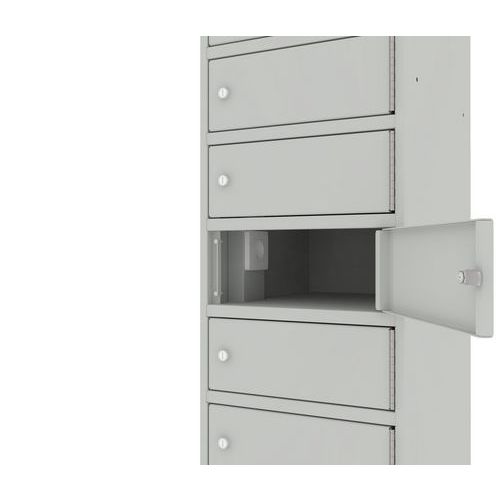 | Názov produktu | Skriňa s napájaním na notebooky, 10 priehradiek, sivá/modrá |