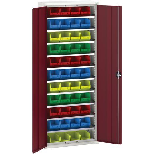 Skriňa Bott Verso s boxami, 200 x 80 x 35 cm, 10 políc, 44 boxov, šedá-červená