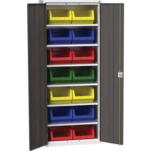 - Vystužené krídlové dvere s trojbodovým cylindrickým rázvorovým zámkom. vrátane plastových boxov č. 5 vx š xh: 19 x 30,3 x 48,5 cm (mix farieb).