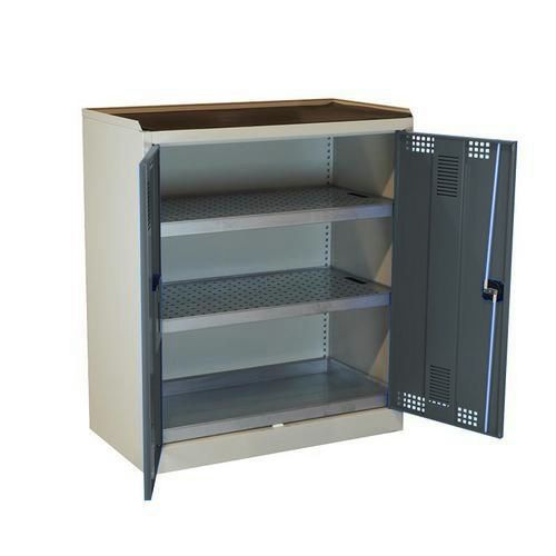 Skriňa na uskladnenie kvapalín, 1 180 x 950 x 500 mm, sivá/tmavosivá
