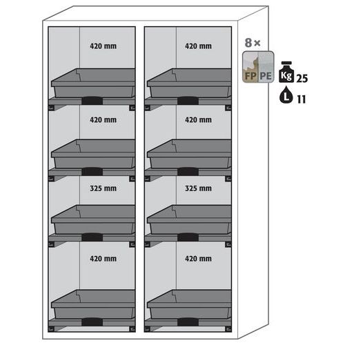- Vhodné na bezpečné a predpisové skladovanie agresívnych, nehorľavých látok.