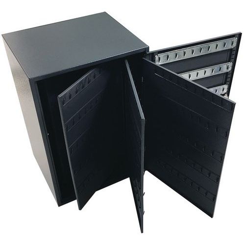 - Veľkokapacitná kovová schránka v hranatom vyhotovení na uschovanie 500 kľúčov.