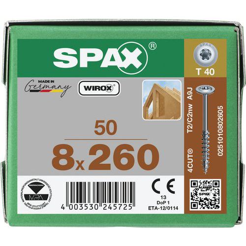 Skrutky do dreva s plochou hlavou Spax TX ø 8 mm, 260 mm