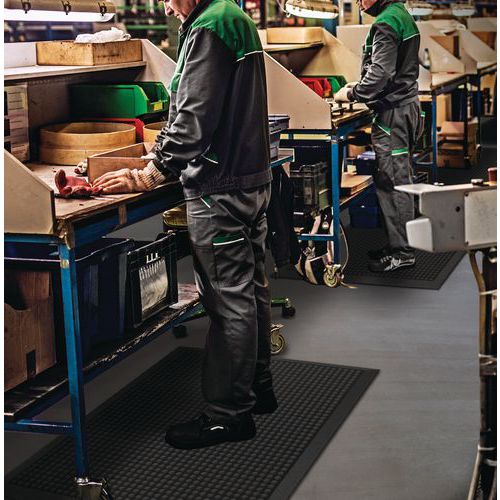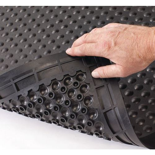 Individuálna protiúnavová gumová rohož pre všeobecné použitie. Protišmykové vlastnosti: navrhnutá tak, aby priľnula k podlahe a zabránila pošmyknutiu. Veľký komfort vďaka zrnitému povrchu s ergonomickými bublinami na zmiernenie únavy.