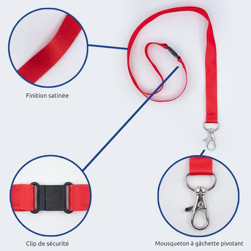 Šnúrky na krk s karabínou Avery, 10 ks, červená