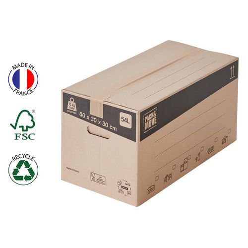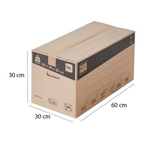 Sťahovacia krabica Pack&Move s bočnými úchytmi umožňujú prepravu všetkých vašich predmetov. Praktické a robustné prevedenie ochráni aj krehké predmety ako sú knihy, vázy alebo tienidlá na lampy. Tieto sťahovacie boxy sú praktické a odolné. Druh lepenky : Trojvrstvová Záruka výrobcu pre zákazníka : 2 roky