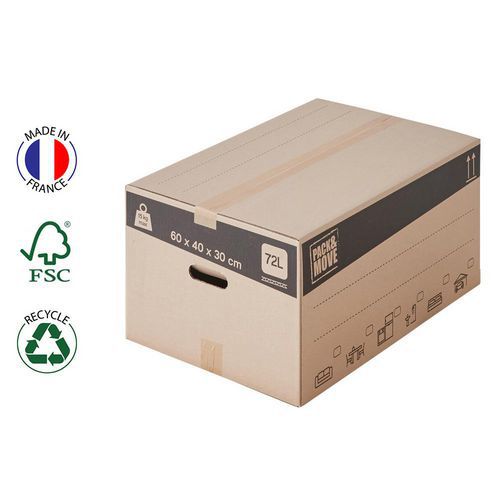Sťahovacia krabica Pack&Move s bočnými úchytmi umožňujú prepravu všetkých vašich predmetov. Praktické a robustné prevedenie ochráni aj krehké predmety ako sú knihy, vázy alebo tienidlá na lampy. Tieto sťahovacie boxy sú praktické a odolné. Záruka výrobcu pre zákazníka : 2 roky Druh lepenky : Trojvrstvová