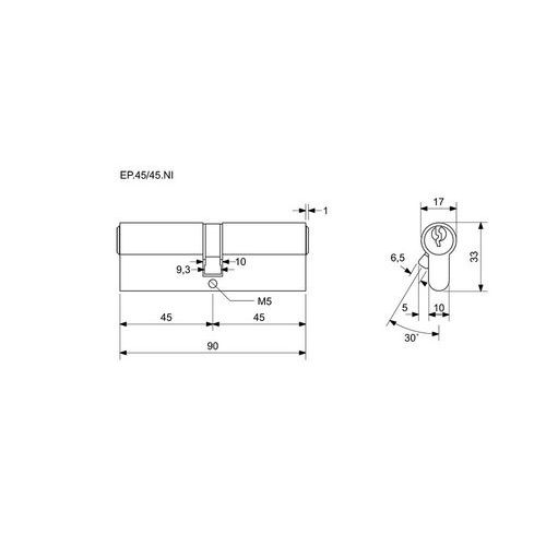 Stavebná vložka EuroPlus, 45/45 mm, nikel