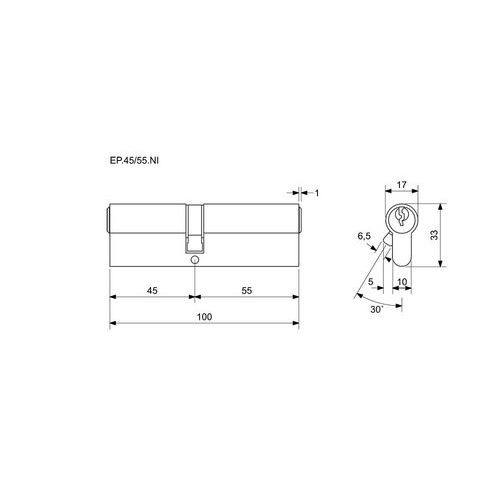 Stavebná vložka EuroPlus, 45/55 mm, nikel