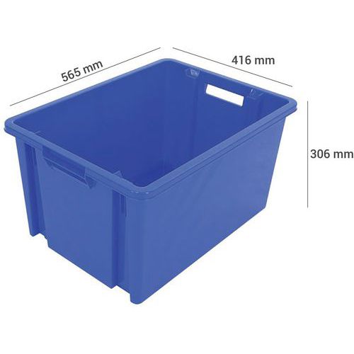 - Stohovateľné kontajnery s otvorenými madlami pre jednoduchú manipuláciu.