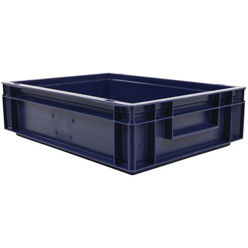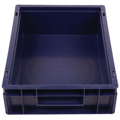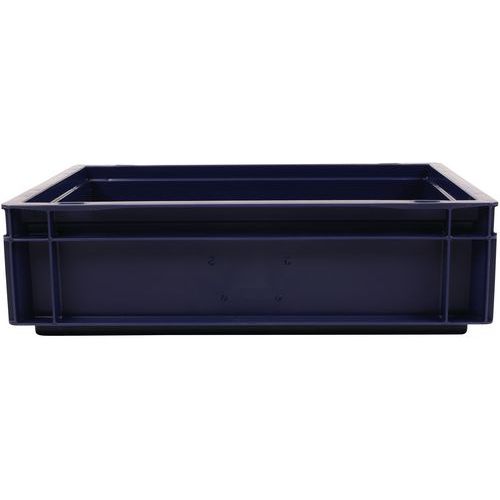 - Stohovateľné polypropylénové prepravky s plným dnom aj stenami sú kompatibilné s europaletami.