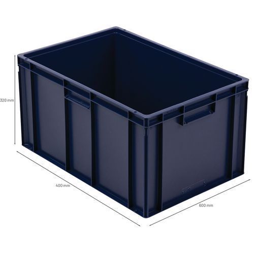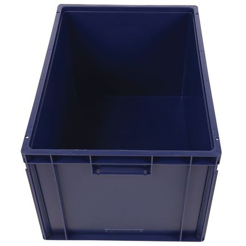 - Stohovateľné polypropylénové prepravky s plným dnom aj stenami sú kompatibilné s europaletami.