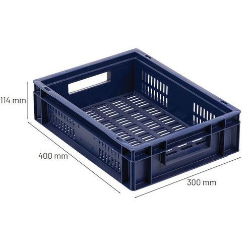 - Stohovateľné polypropylénové prepravky s perforovaným dnom aj stenami sú kompatibilné s europaletami.