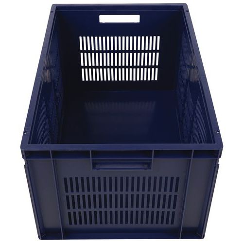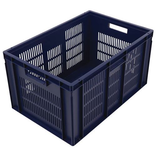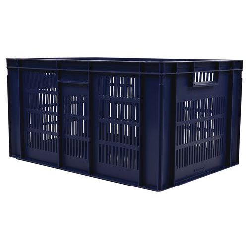 - Stohovateľné polypropylénové prepravky s plným dnom a perforovanými stenami sú kompatibilné s europaletami.