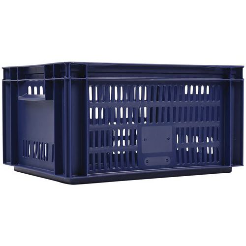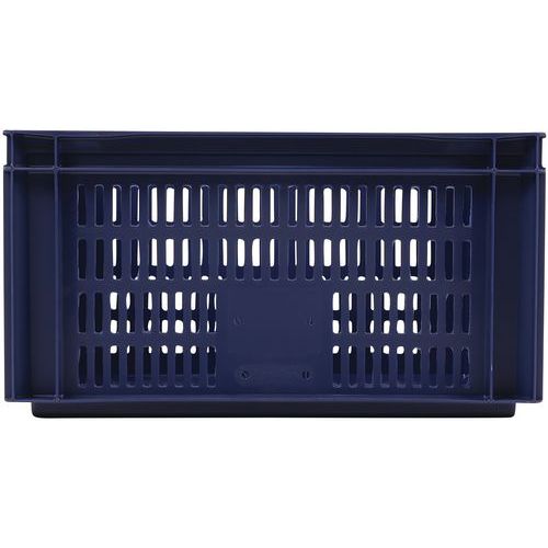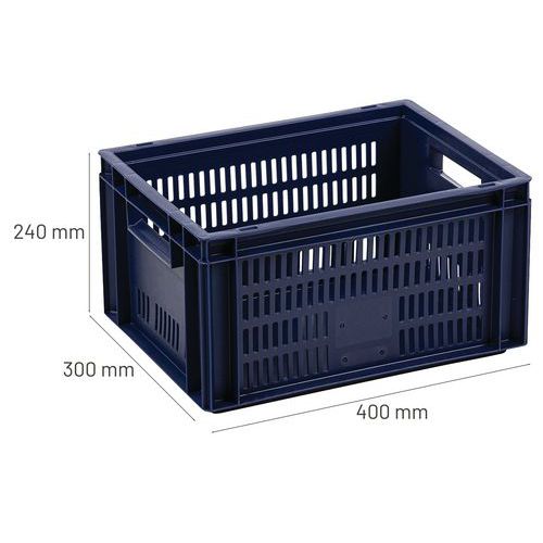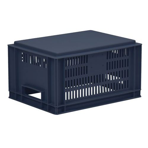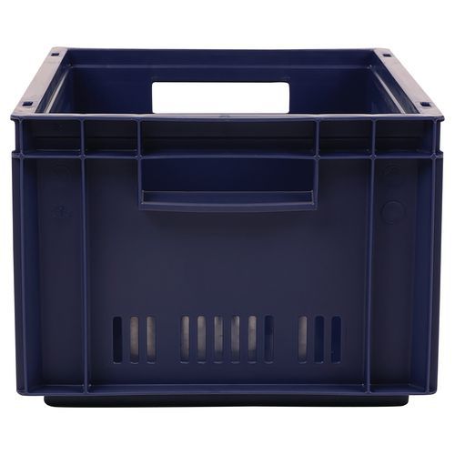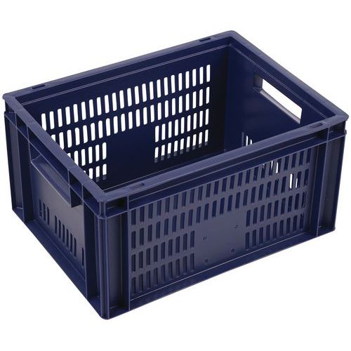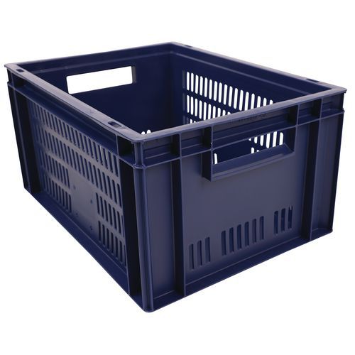 - Stohovateľné polypropylénové prepravky s plným dnom a perforovanými stenami sú kompatibilné s europaletami.