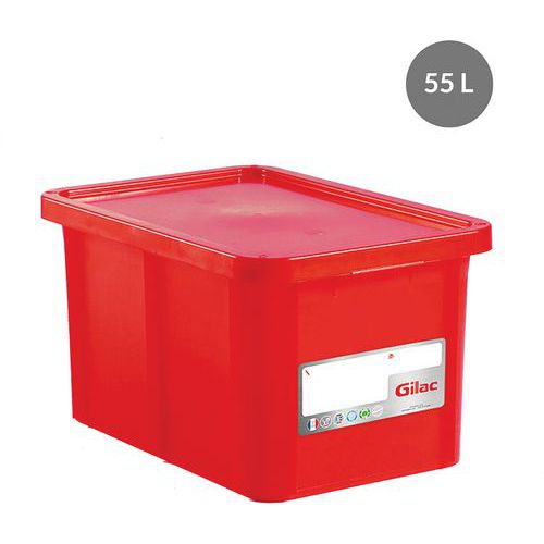 Stohovateľná plastová prepravka s vekom Gilac, 55 l, červená